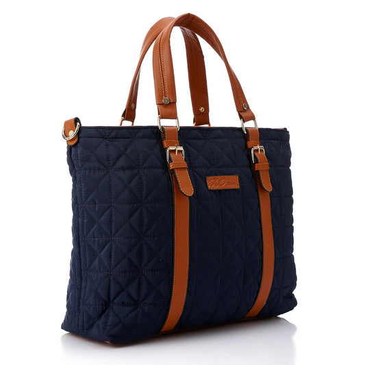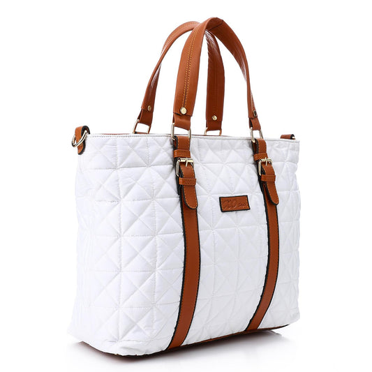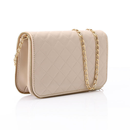 Leather Quilted Hand Bag with Cross Hand – Beige