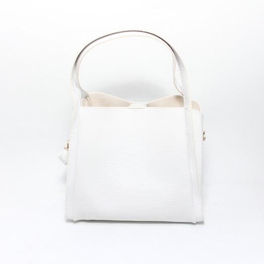 Faux Leather Textured Hand Bag with Cross Hand – Black