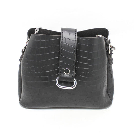 Textured PU Leather Two-Piece Handbag Set – Black