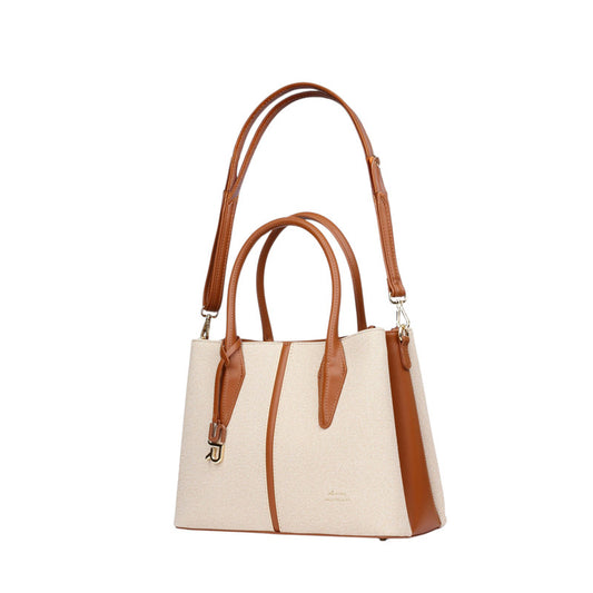 PU Leather Two-Tone Hand Bag – Beige