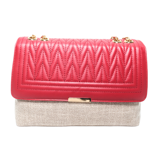 Faux Leather & Woven Fabric Shoulder Bag – Burgundy