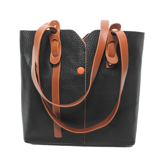 Faux Leather Solid Top-Handle Tote Bag - Black