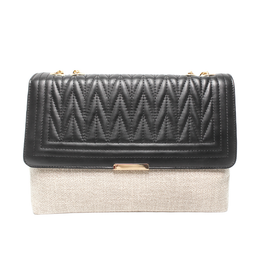 Faux Leather & Woven Fabric Shoulder Bag – Black