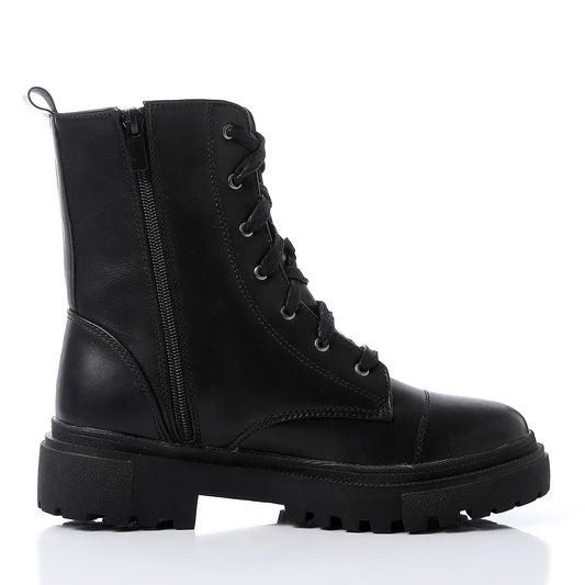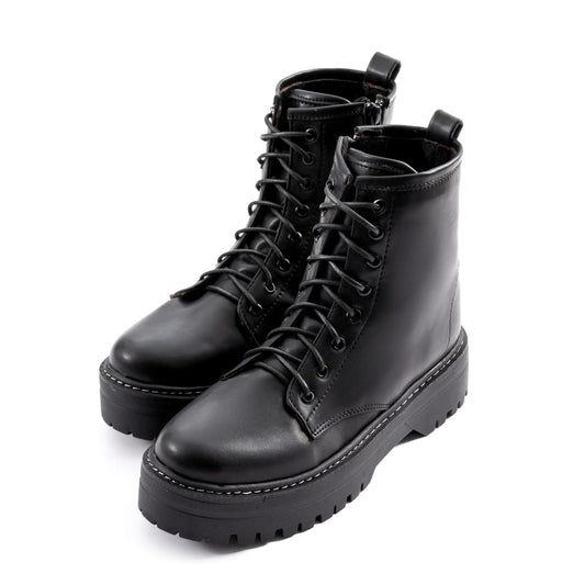 Faux Leather Combat Boots – Black