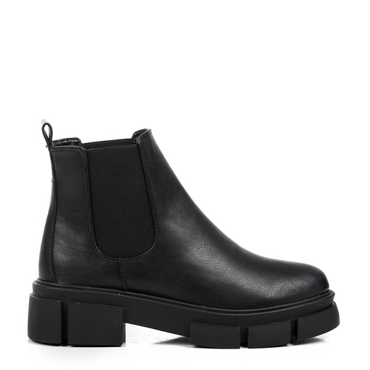 Faux Leather Ankle Boot - Black