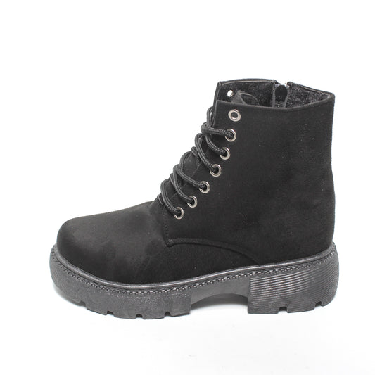 Pu Leather Lace-Up Combat Half Boots – Black (SR-3479)
