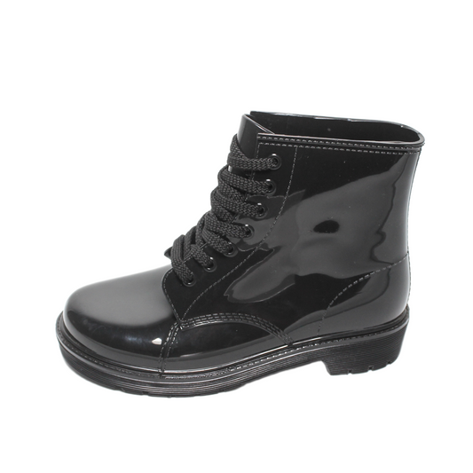 Pu Leather Patent Half Boots – Black (SR-3324)
