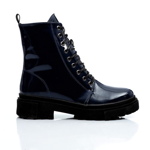 Patent Leather Ankle Boots - Navy Blue