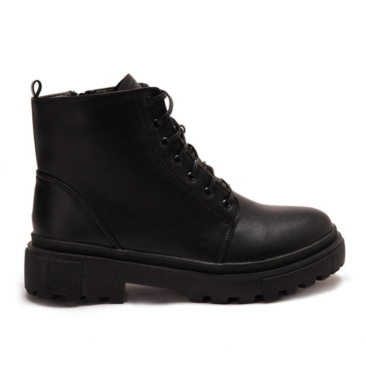 Faux Leather Solid Combat Boot - Black