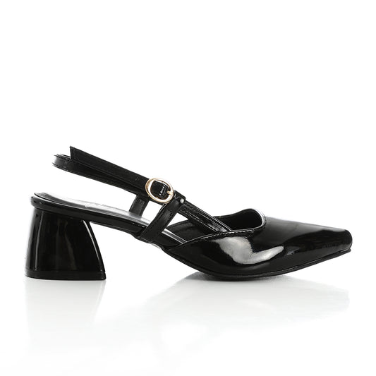 Faux Leather T-Strap Heeled Shoe – Black