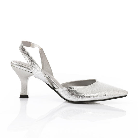Faux Leather Metallic Slingback Kitten Heel Pumps – Silver