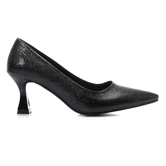 Faux Leather Textured Pointed-Toe Kitten Heels - Black