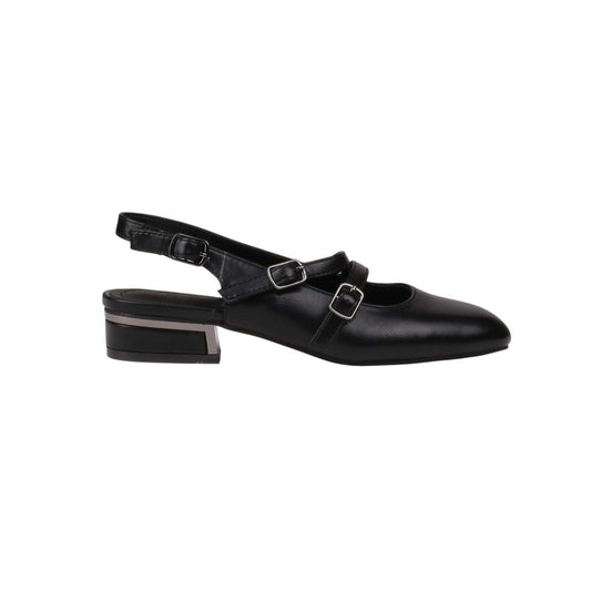 Faux Leather Verne Double Strap Kitten Heels – Black