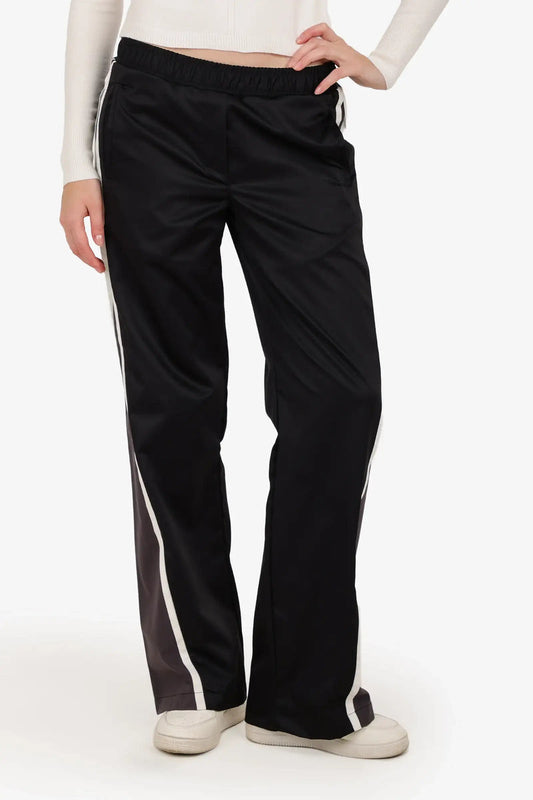 Polyester Blend Two-Tone Wide-Leg Pants – Black