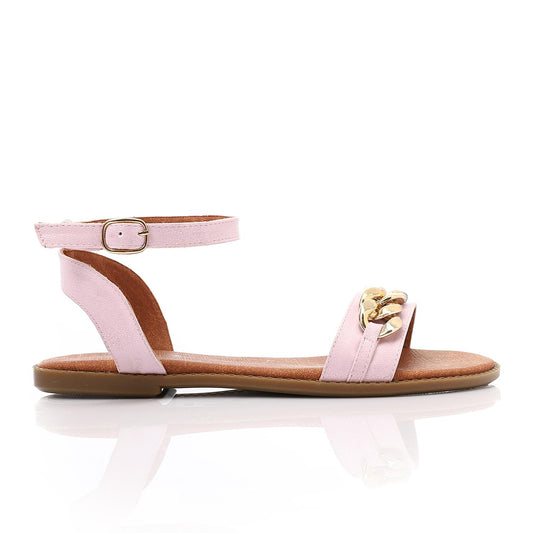 Faux Leather Ankle Strap Espadrille Flat Sandal - Brown