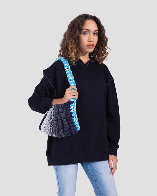 Faux Leather Studded Hobo Shoulder Bag – Black