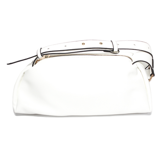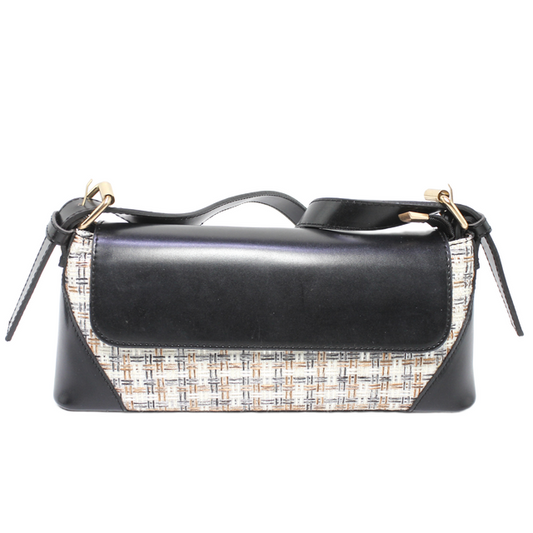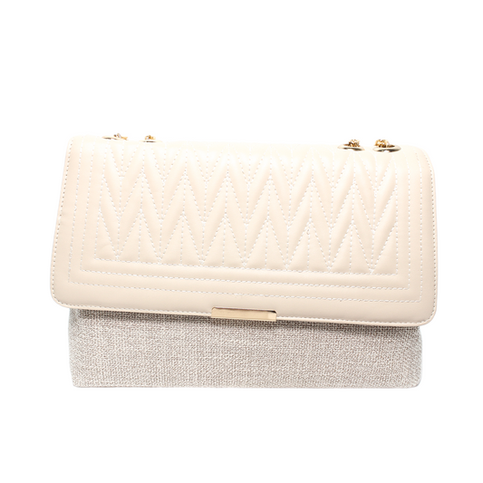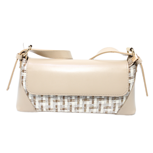 Faux Leather & Woven Fabric Shoulder Bag – Beige