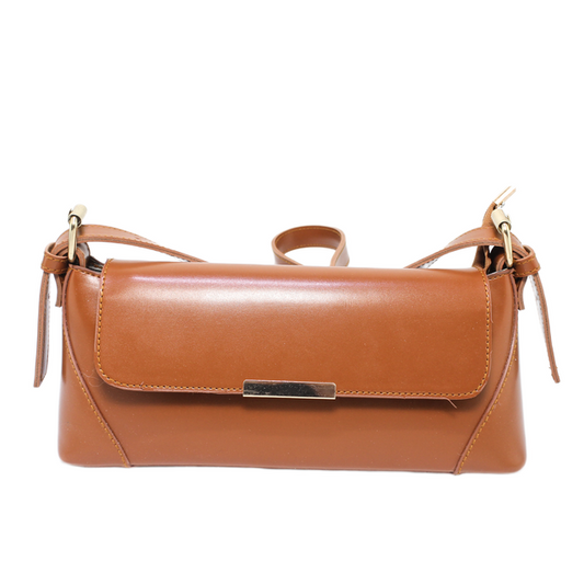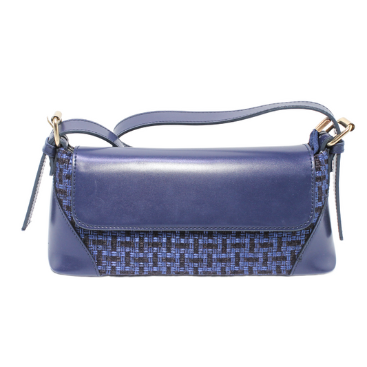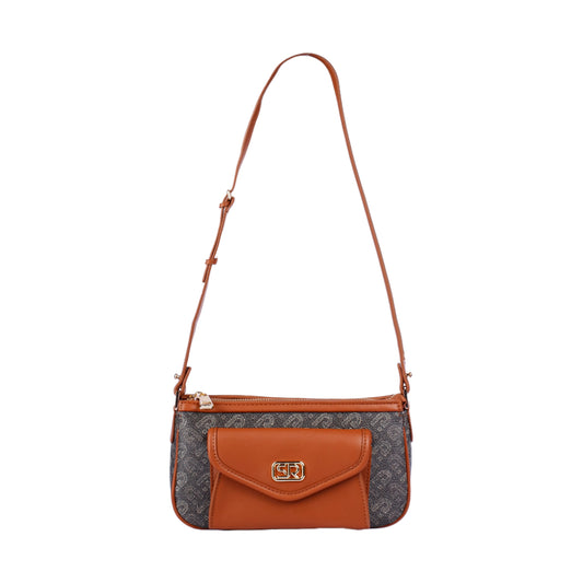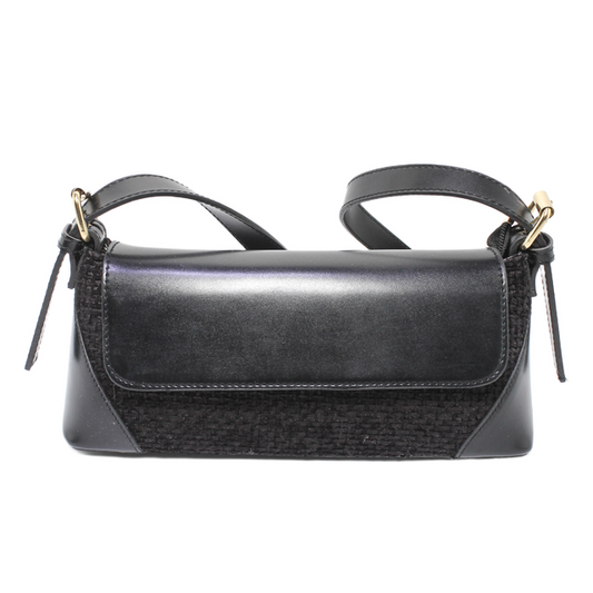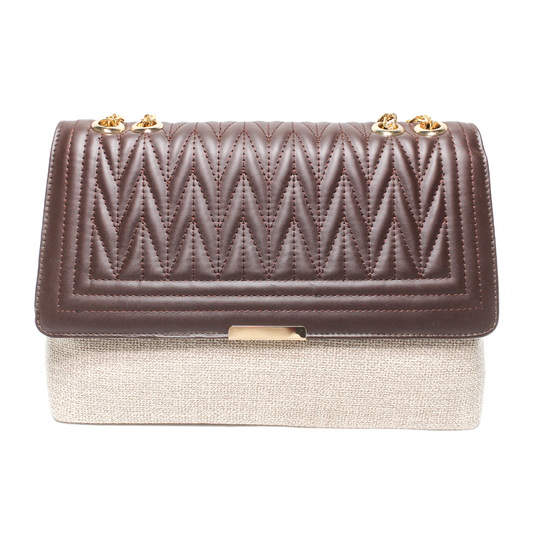Faux Leather & Woven Fabric Shoulder Bag – Brown