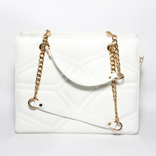 Pu Leather Structured Shoulder Bag - Off White