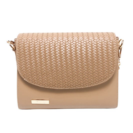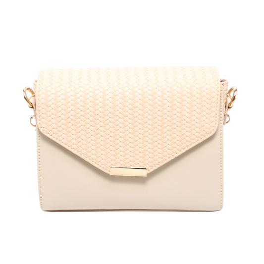 Faux Leather Shoulder Handbag – Beige