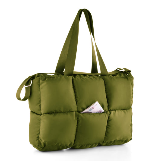 Large Capacity Waterproof Soft Quilted Shoulder Bag - Olive