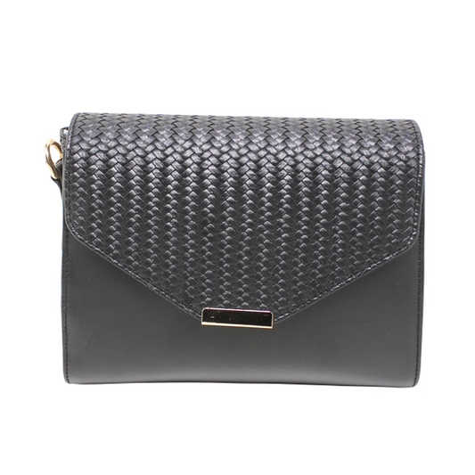 Faux Leather Stylish Shoulder Bag - Black