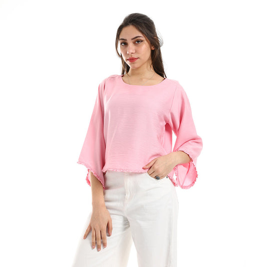 Tencel Solid Long Sleeve Cropped Shirt – Peach