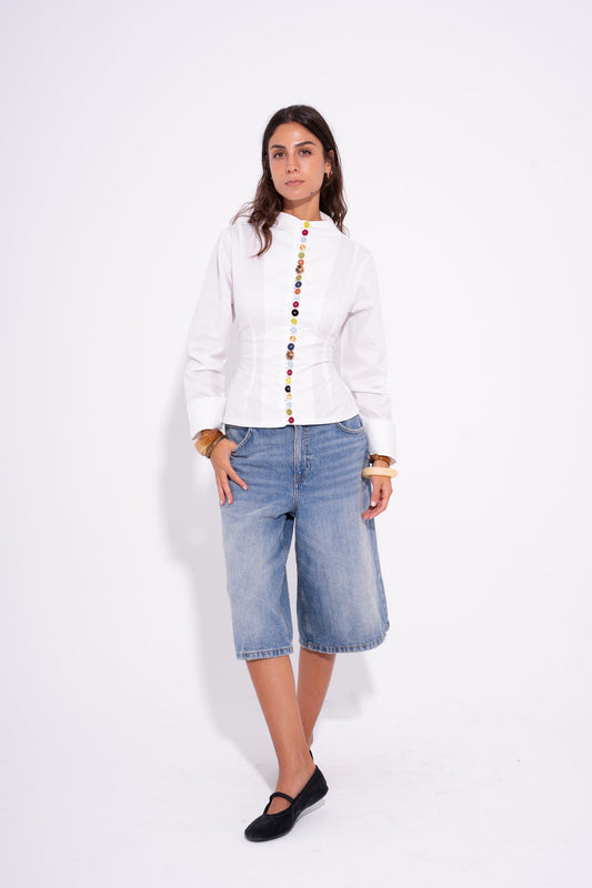 Tencel Solid Long Sleeve Cropped Shirt – Off White