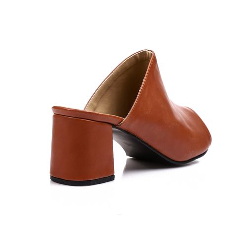 Faux Leather Block Heel Slippers – Tan