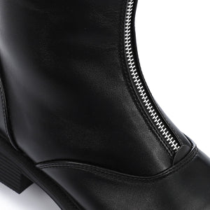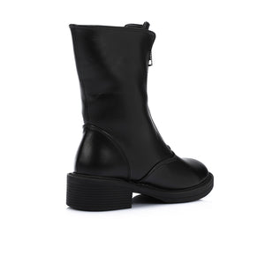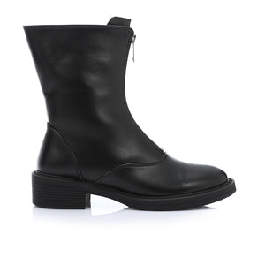 Faux Leather Ankle Boot - Black