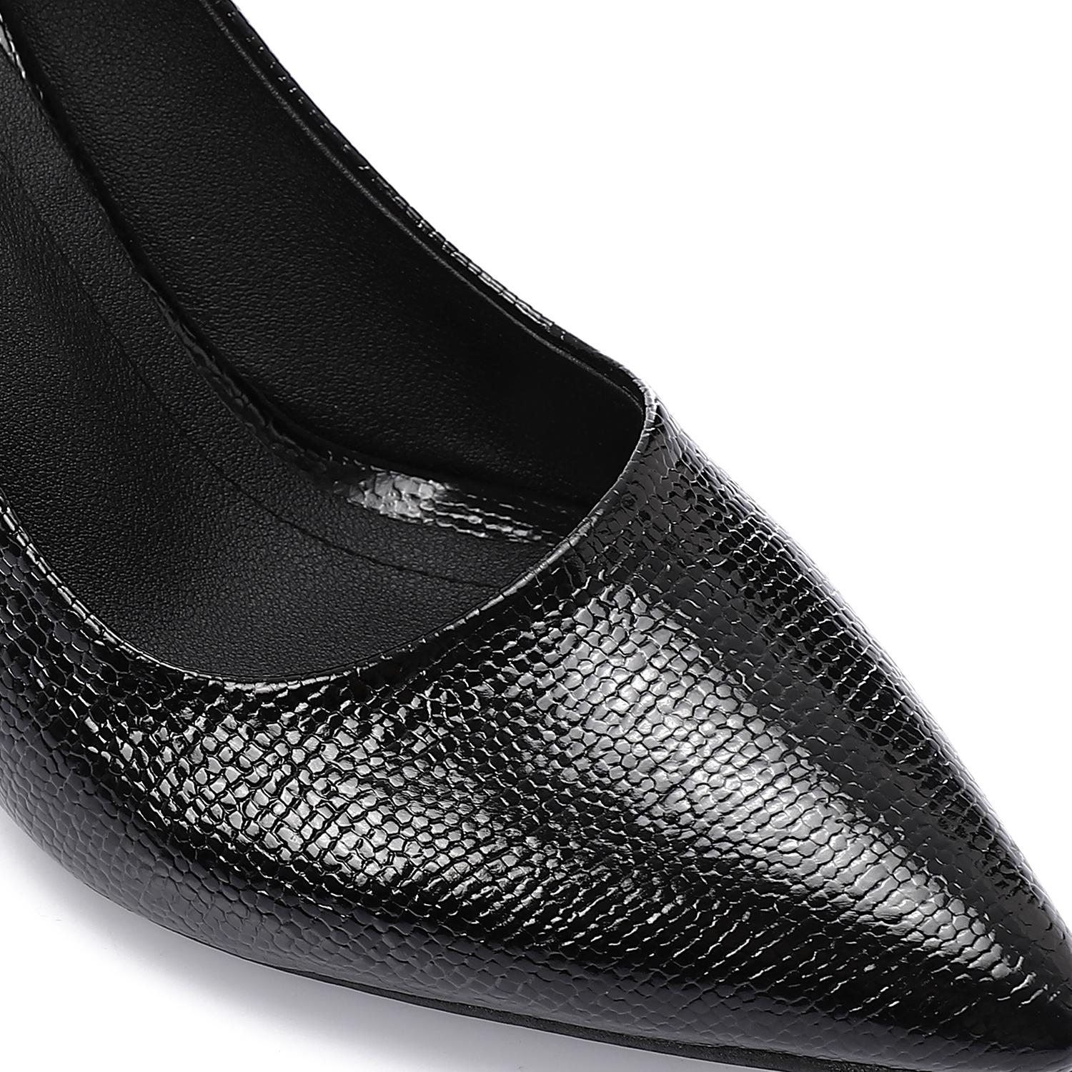 Key Features: Textured finish, comfortable mid-height heel, versatile black color, slip-on ease