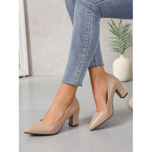 - Key Features: Sophisticated pointed toe, cushioned insole, versatile block heel for stability, timeless nude tone, slip-on ease