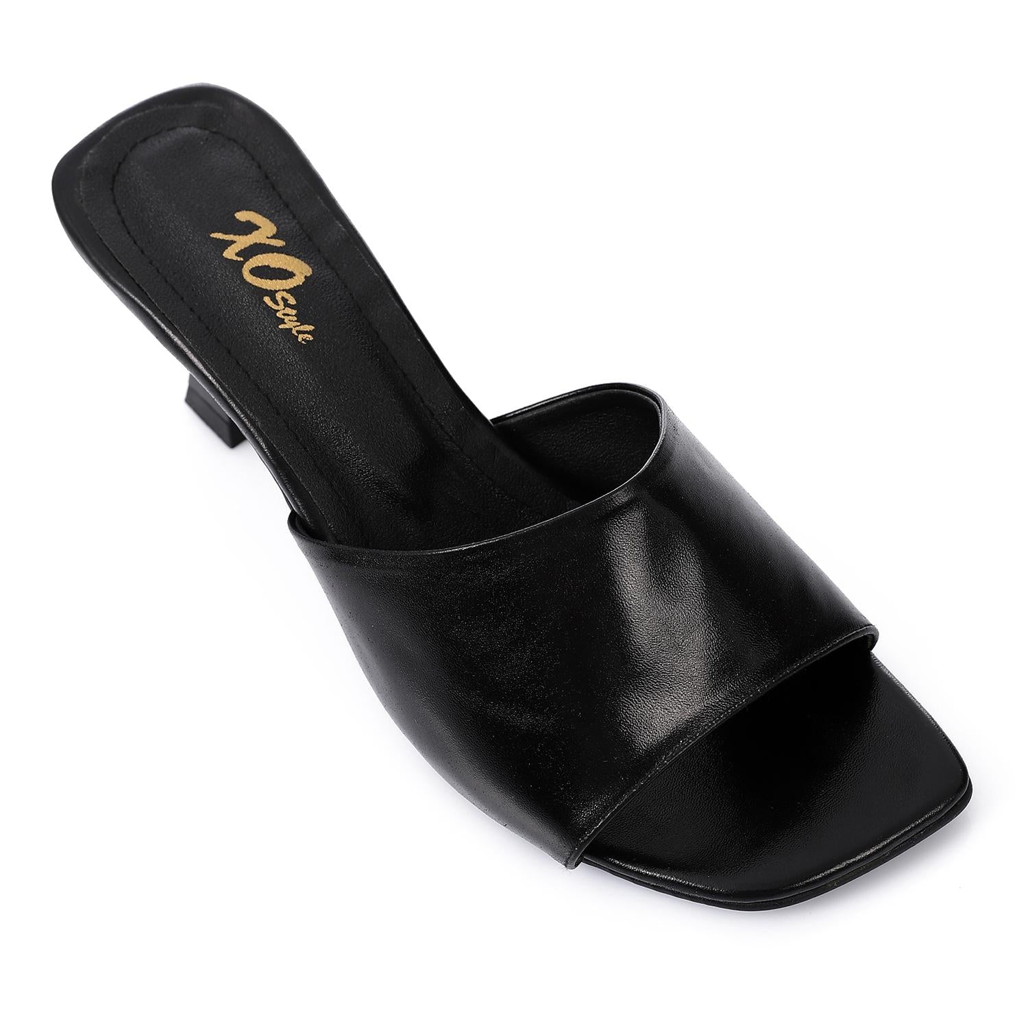 - Key Features: Sleek smoky metallic finish, wide single strap across toes, modern square toe design, cushioned comfort insole, sculpted heel for elegance and stability
