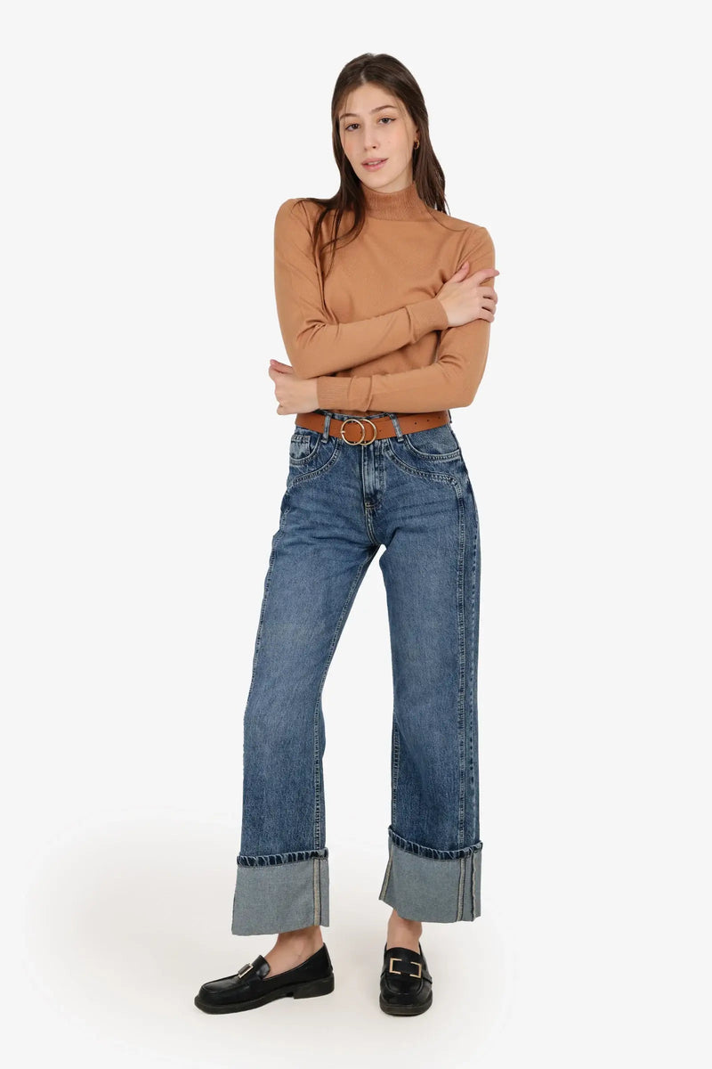 Acrylic Solid High Neck Pullover – Camel