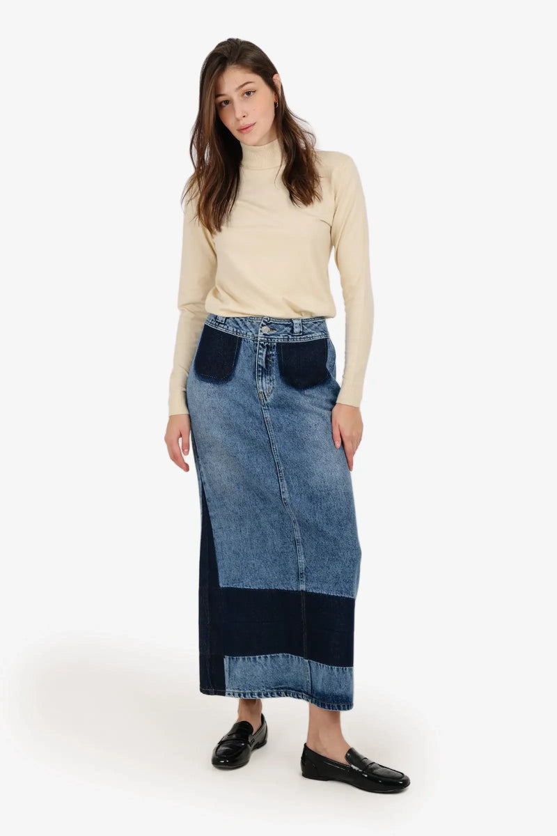 - Neckline: High ribbed neck