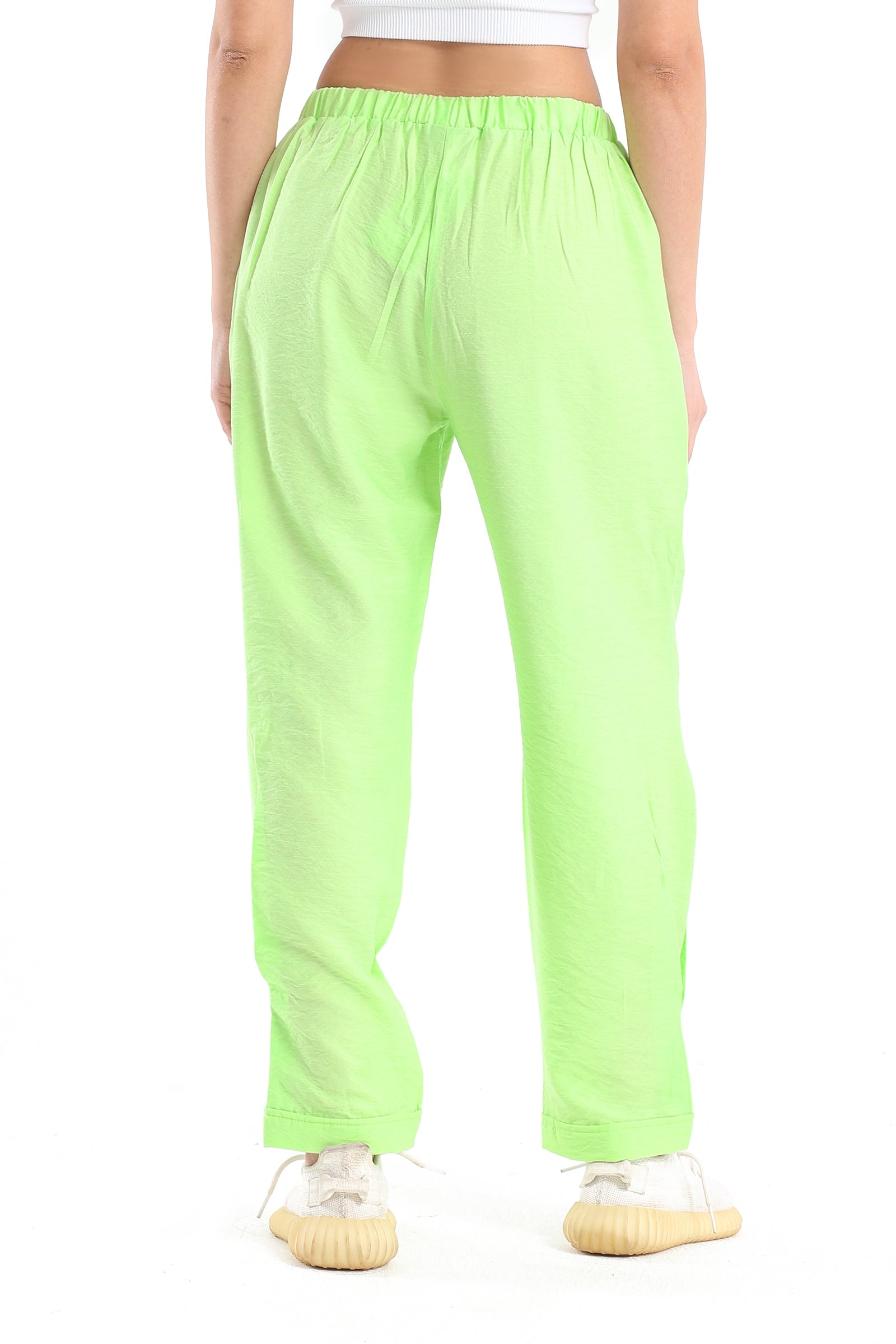 Boyfriend Fit Solid Pants - Lime