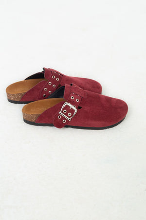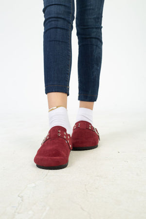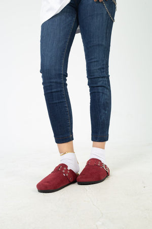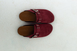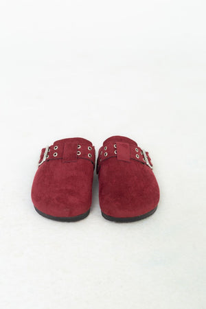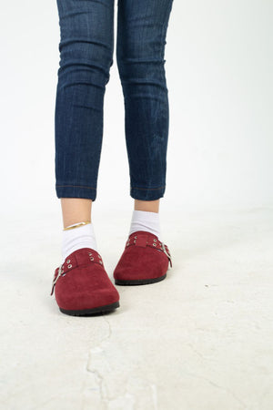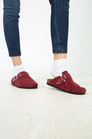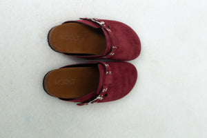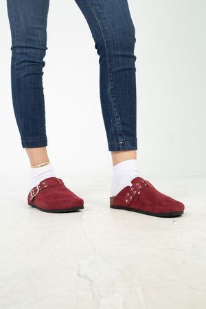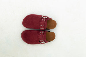 Chamois Leather Buckle Clog Mules – Burgundy