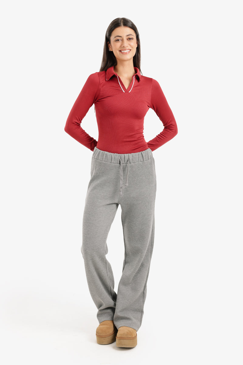 Polyamide V-Collared Long Sleeve Polo – Light Burgundy