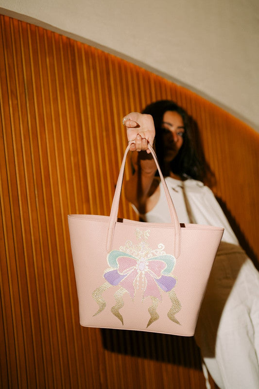 Faux Leather Bow Embellished Shoulder Bag – Pink