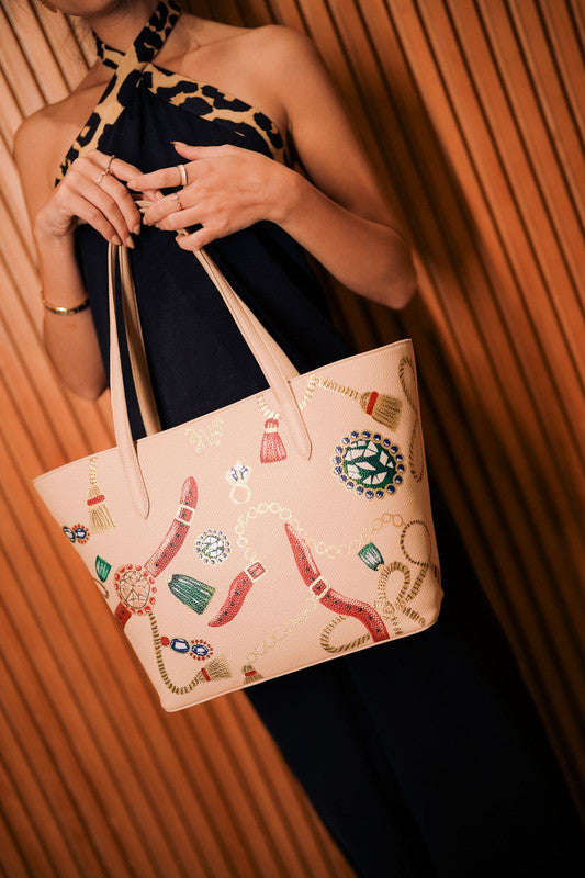 - Unique Feature: Intricate gemstone-like embellishments and tassel motifs across the surface