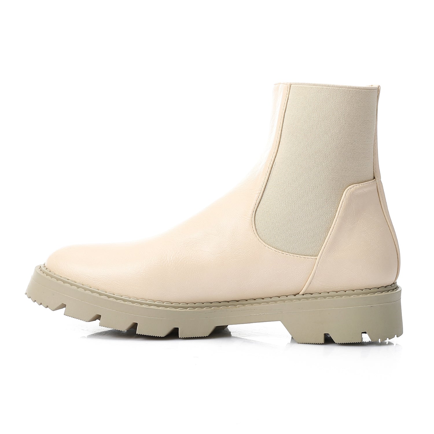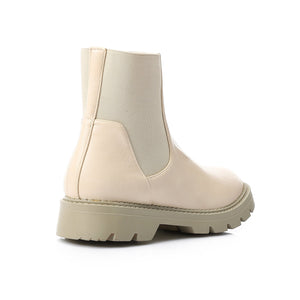 Faux Leather Plain Chelsea Ankle Boots – Beige (3048)