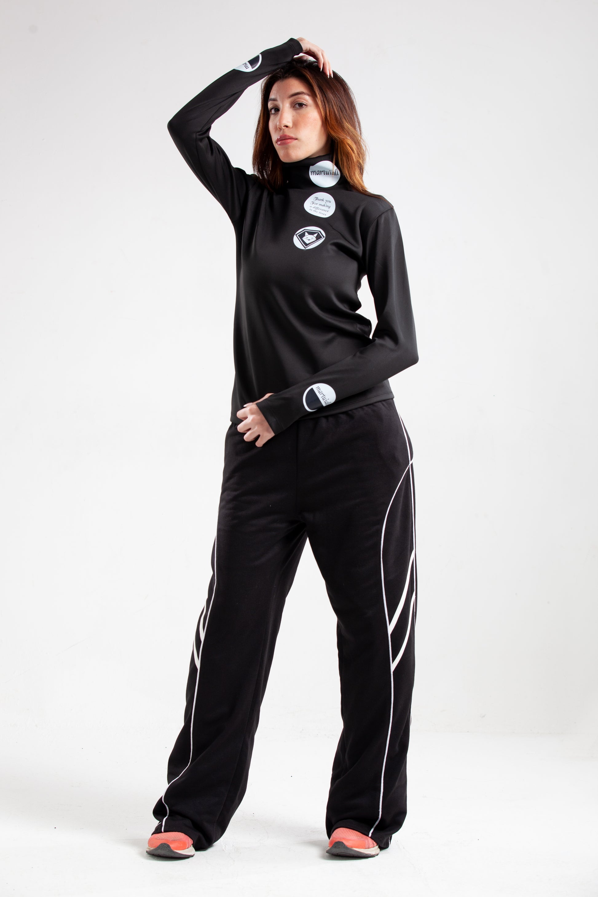 - Neckline: High neck / mock neck