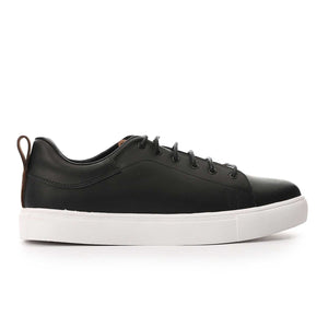 Design Details: Sleek matte black finish with contrasting white midsole and subtle brown heel tab accent