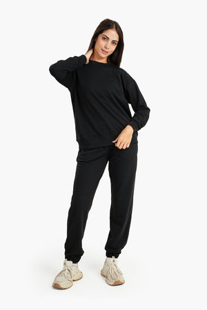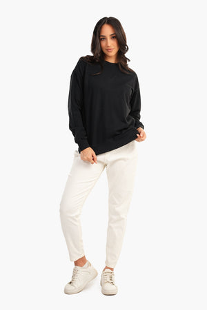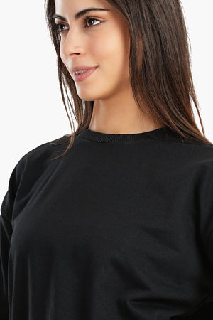 Designed in a regular fit with a classic solid pattern, it combines timeless simplicity with modern comfort. The round neck and long sleeves with dropped shoulders enhance its relaxed silhouette, ensuring ease of movement and a casual, effortless look.