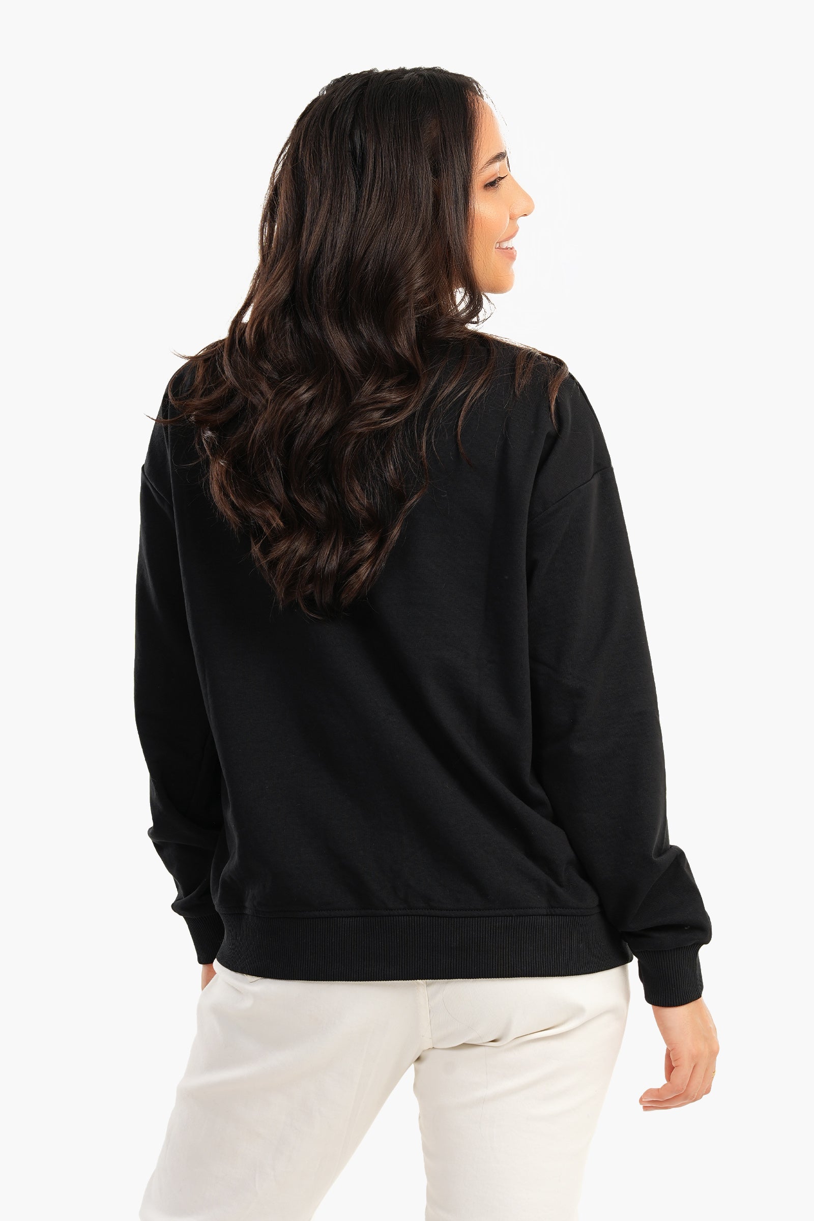 Featuring ribbed edges at the neck, cuffs, and hemline, this sweatshirt provides a snug fit and helps retain warmth. Its slip-on design makes it easy to wear and layer over your favorite tops for added comfort and style.