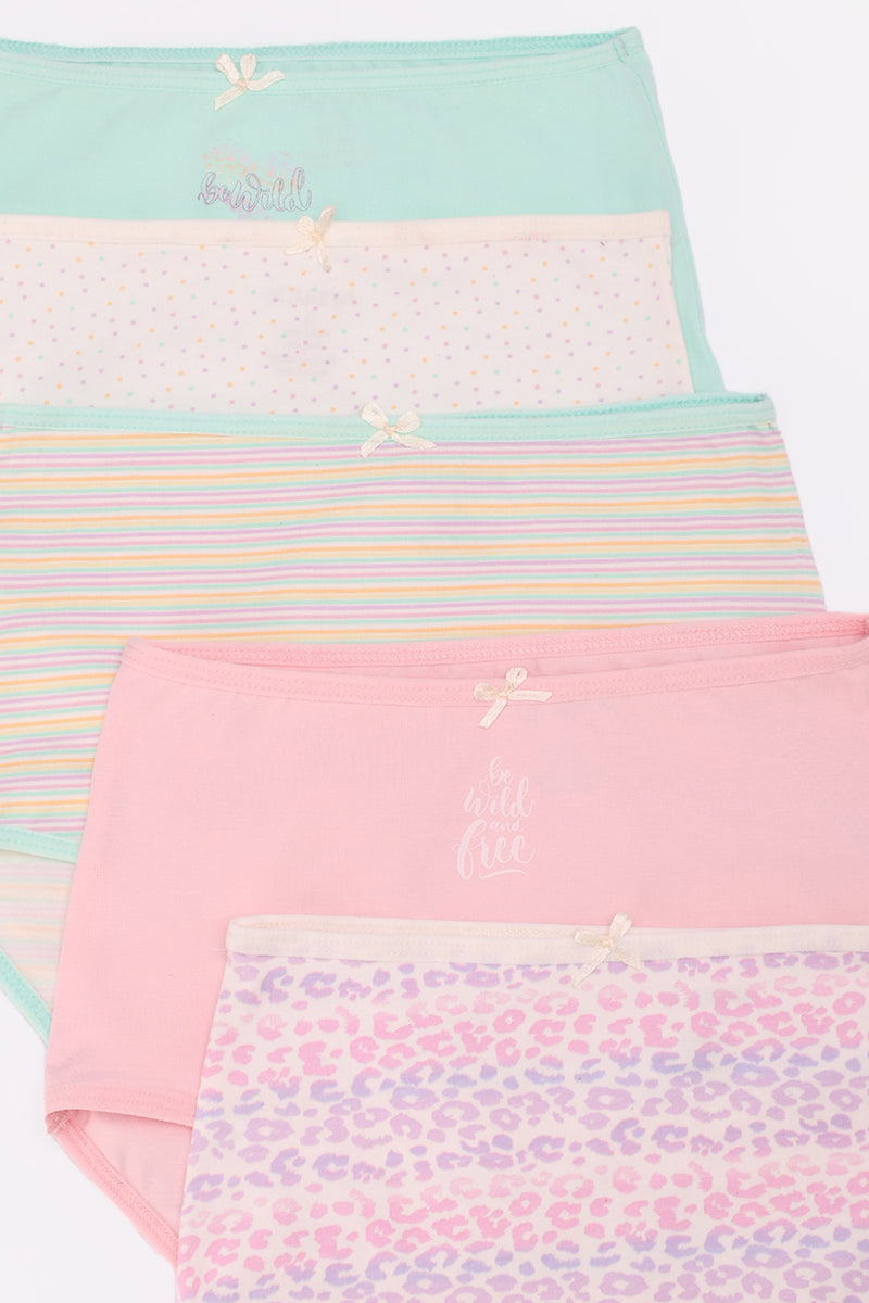 - Pack Details: Set of 5 assorted pieces with playful bow detail on waistband