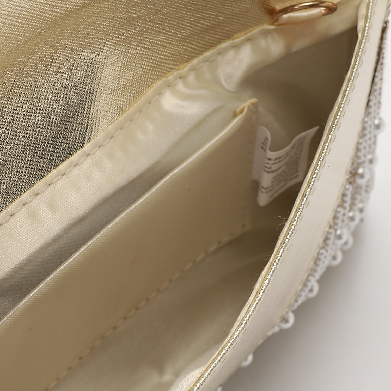 - Hardware / Details: All-over pearl and rhinestone embellishment with metallic hardware accents