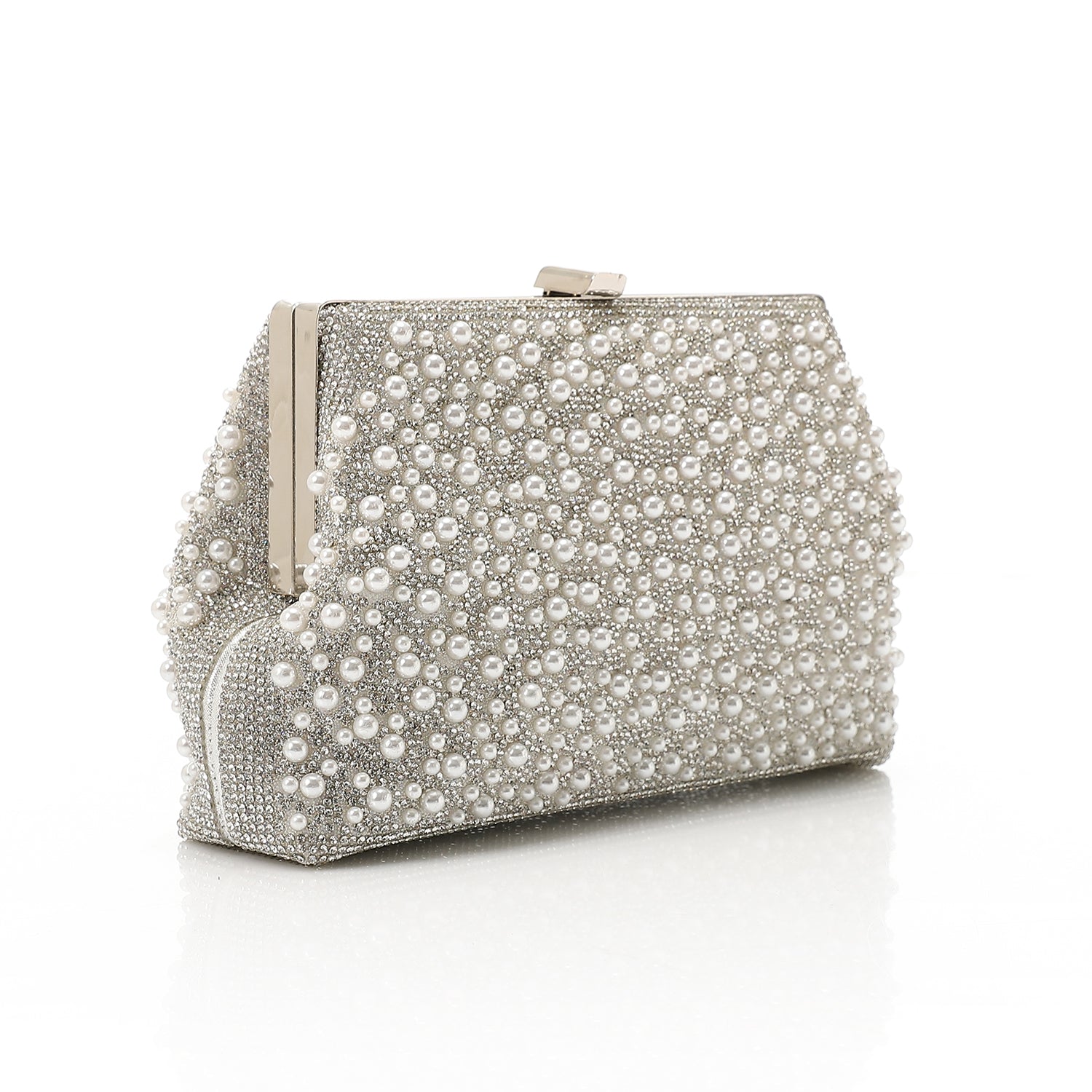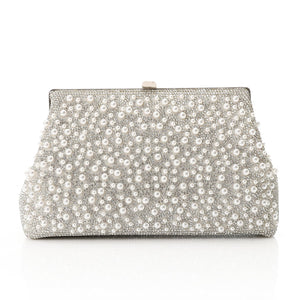 Synthetic Pearl Embellished Box Clutch – Silver (4174)