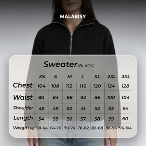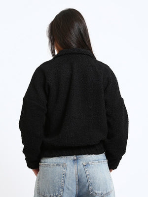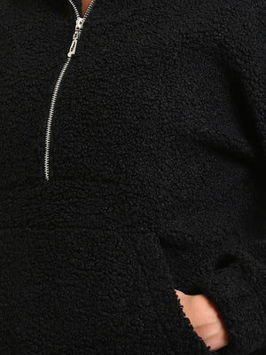 Teddy Fur Plain Half-Zip Sweatshirt – Black