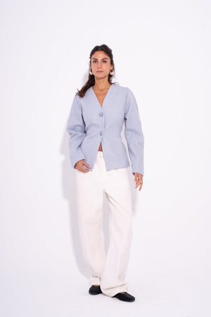 - Design: Minimalist structured blazer with a feminine, contoured silhouette